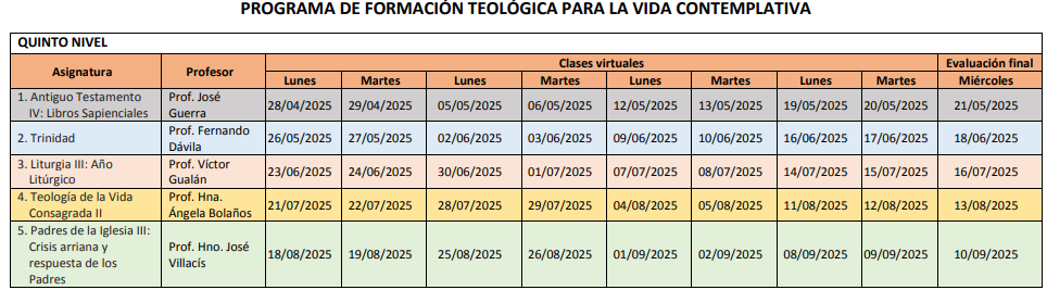 TEOLOGÍA PARA LA VIDA CONTEMPLATIVA / Quinto Nivel