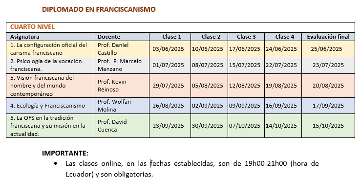 DIPLOMADO EN FRANCISCANISMO / Cuarto Nivel